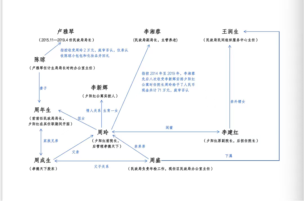 而雁峰区民政局成为风暴之眼,包括曾任局长卢雅琴在内的4东说念主被追刑责。2015年11月至2019年5月技术任雁峰区民政局局长的卢雅琴被留置,时任雁峰区民政局主宰福慈股的副局长李湘蓉、时任雁峰区民政局民间组织服务中心(2019年由民间组织管束局更名)主任王润生也被留置。技术,雁峰区民政局福慈股(后为养老股)股长邓桂兰先被留置,后以横蛮使命罪被判三缓三。